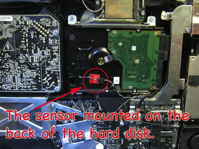 If you just replace the hard disc and ignore the little plug (or transfer the plug to a different hard disk that has the socket but not the sensor) then the fans in the Mac will run full speed after a while, as the iMac realizes that it is not able to read the temperature of the drive, and turns the fans up to full speed just in case.